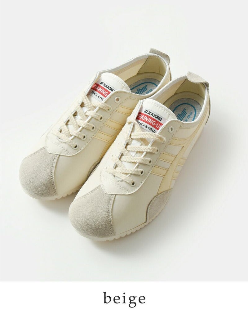 ナイロンアッパーに、つま先、サイド、かかとなど摩耗する部分にはベロア素材を採用。7ミリ幅のコットンシューレースはキナリをチョイス、レトロな雰囲気を演出。サイドにはシルクスクリーンでプリントしたパンサーロゴをあしらっています。