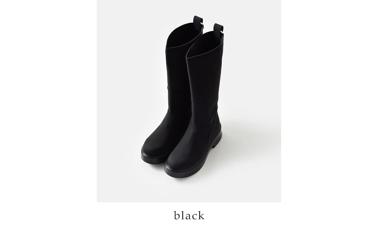 脚を真っ直ぐに見せる直線的な筒が特徴的。細身ながらも5cmソールで安定感があり、美脚効果をプラス。デイリーの通勤、休日のお出かけ、雨の日コーデにも合わせやすい万能なシルエットです。