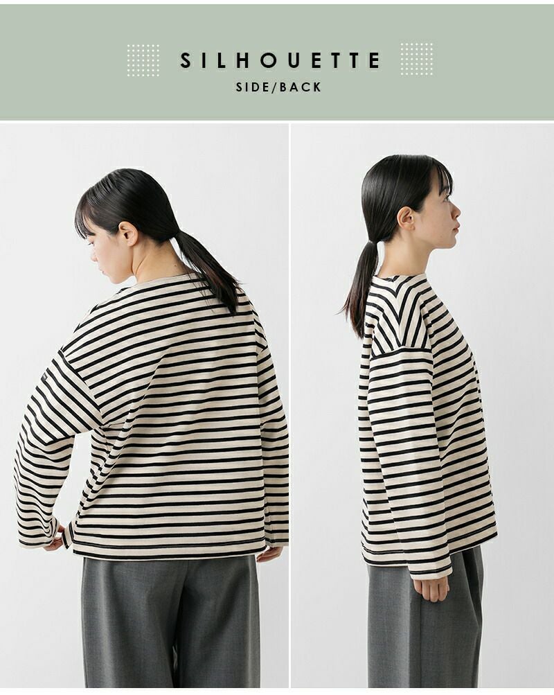 OUESSANTをベースとしたモデル。身幅と袖幅にゆとりをもたせたデザインで抜け感のあるフェミニンなシルエットが実現します。ゆったりとしているので着心地もよく、レディライクな1枚です。清潔感あふれるボーダーと、定番に使いやすい無地、どちらも魅力的。