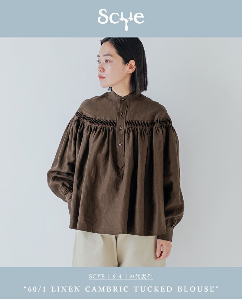 2000年スタート。デザイナーの日高久代氏とパターンカッターの宮原秀晃氏が手がけるブランド。サイ(Scye)は、テーラー用語で袖ぐり、鎌の意。19世紀のエドワーディアンズタイルに見られる英国式のテーラリングをクリエーションのベースに現代的視点から様々な要素を加え再構築したリアルクローズを提案している。Scye Basicsは素材、カッティング、内部構造にまで配慮したサイ独自のベーシックアイテムを展開するライン。サイの洋服は1900年代の英国服がそうであったように、デザインよりも機能を重視しているのが特徴。まず糸と素材を作ることから始まり、素材・縫製もほぼ日本国内で仕上げられています。一見シンプルなように見えてもその独自のカッティングやオリジナルの素材によって、袖を通す度に発見があるブランドです。