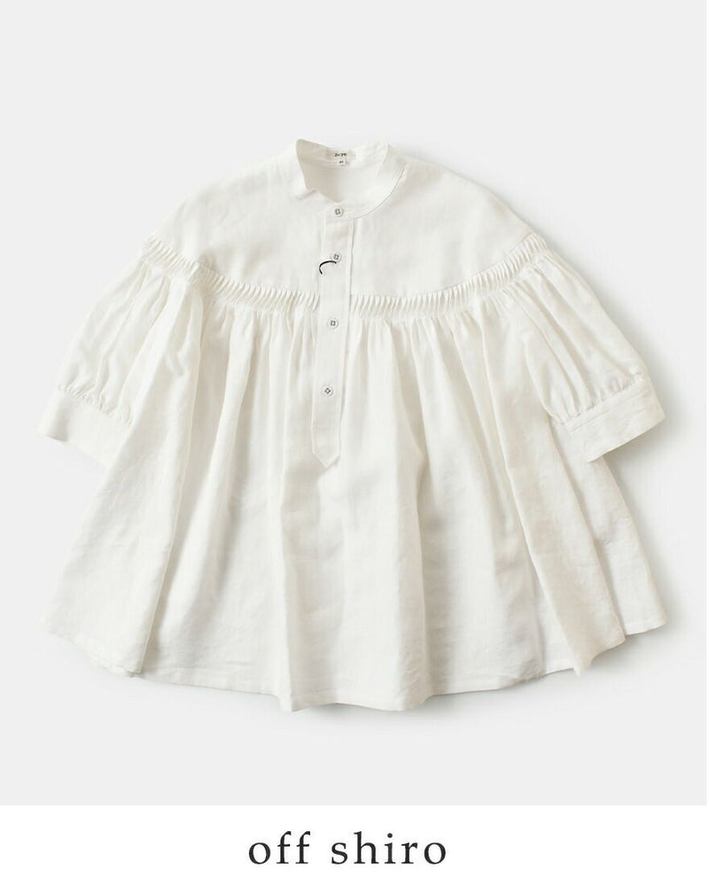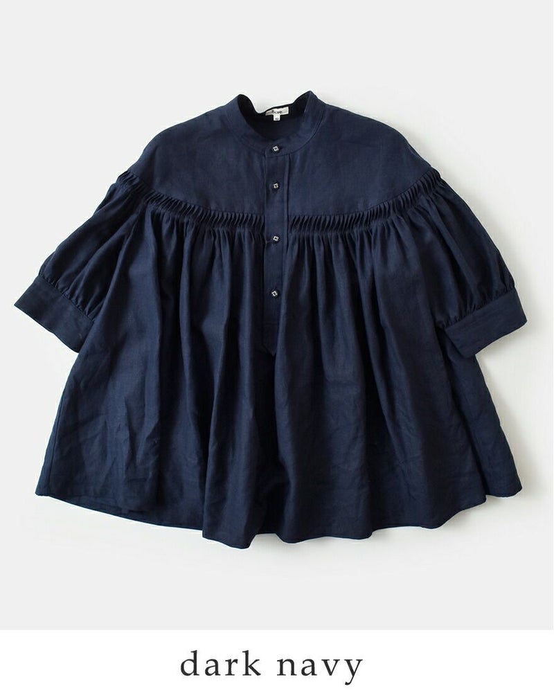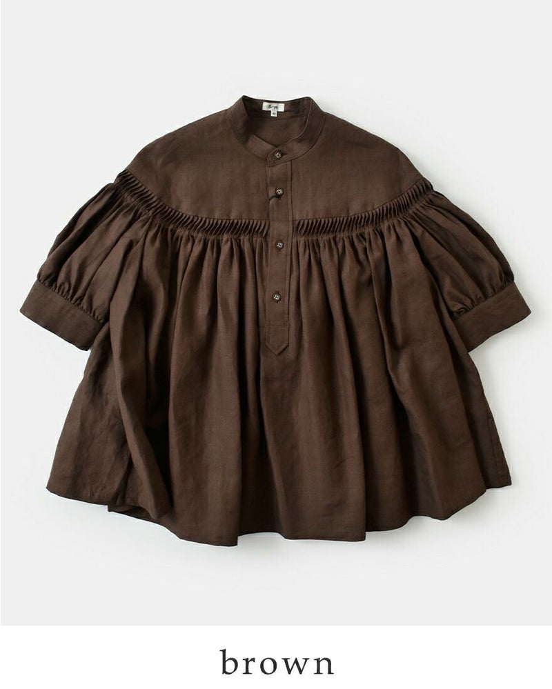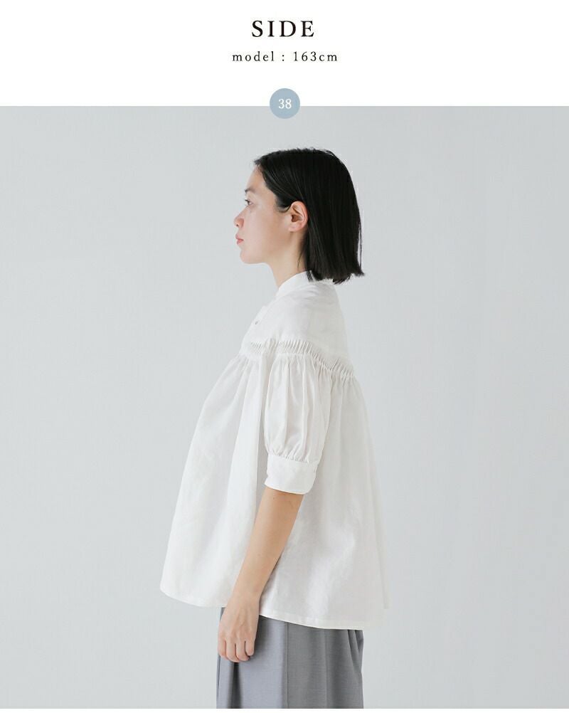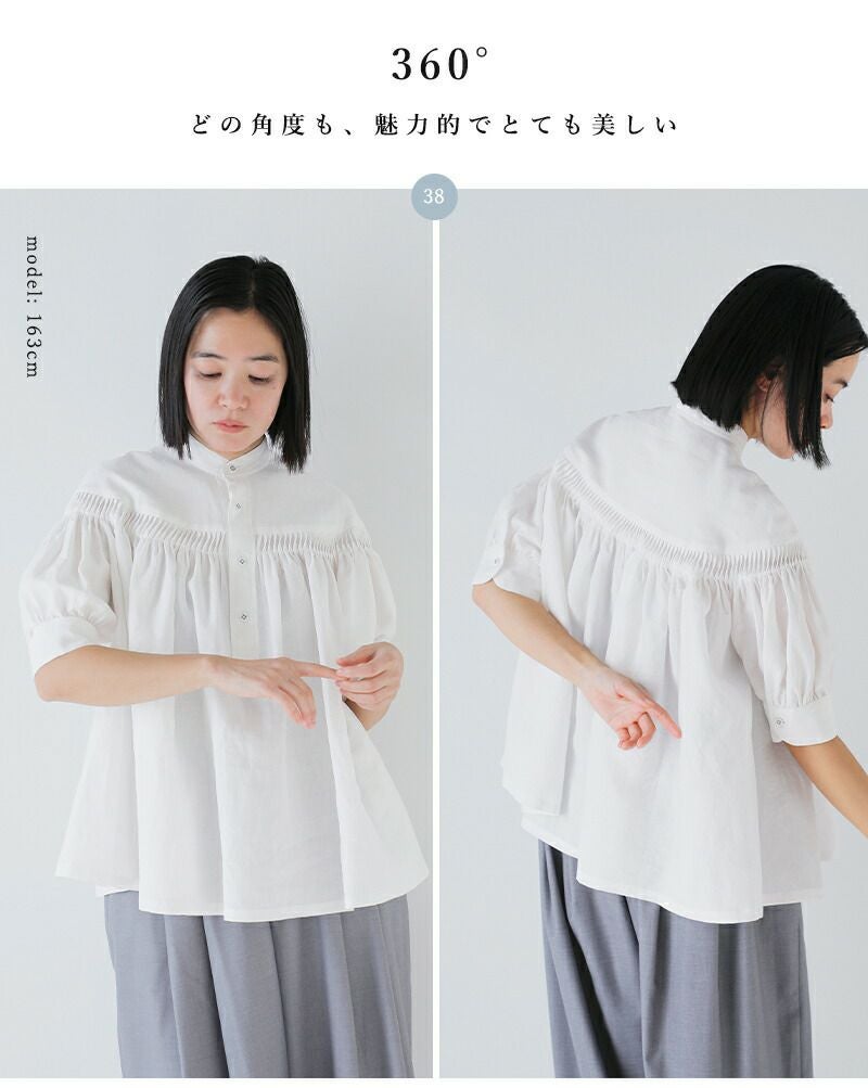リネンキャンブリックタックハーフスリーブブラウス60/1LinenCambricTuckedBlouseHalfSleeve1226-31001