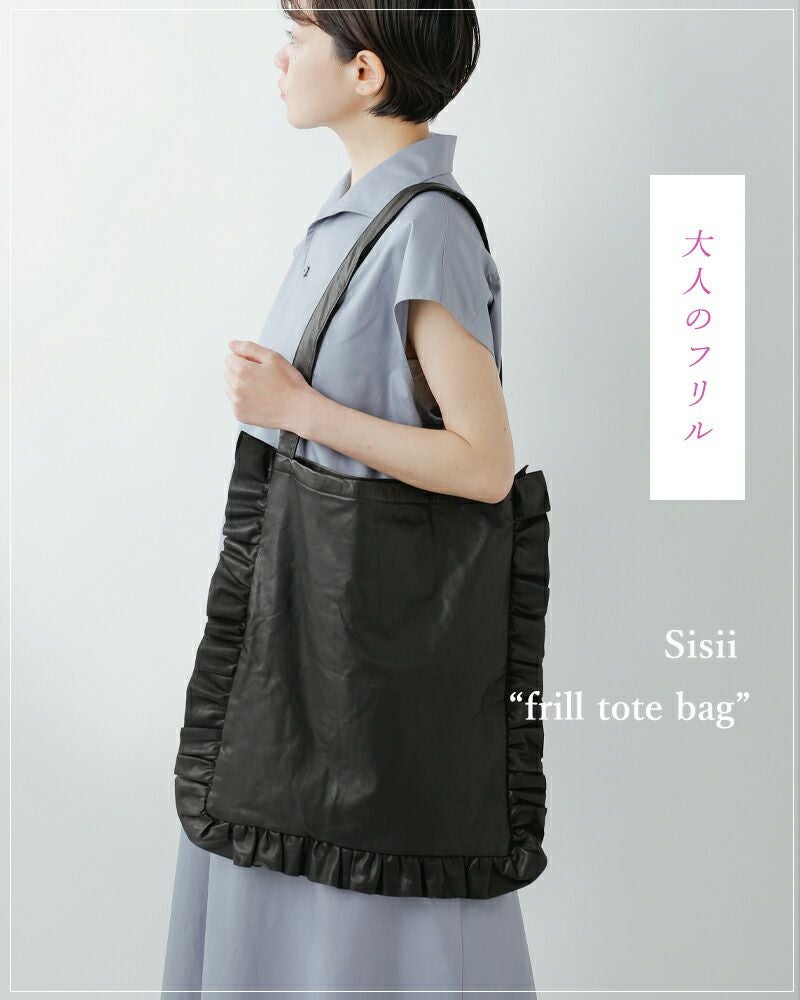 Sisii(シシ)より、フリルが目を惹くフェミニンなレザートートバッグ届きました。 縁取るように配されたフリルが華やかなアクセントになった大きめトートバッグ。オリジナルのカウレザーは柔らかくて軽く、気軽に持つことが出来ます。カジュアルからキレイめまで幅広いコーディネートでも活躍してくれます。