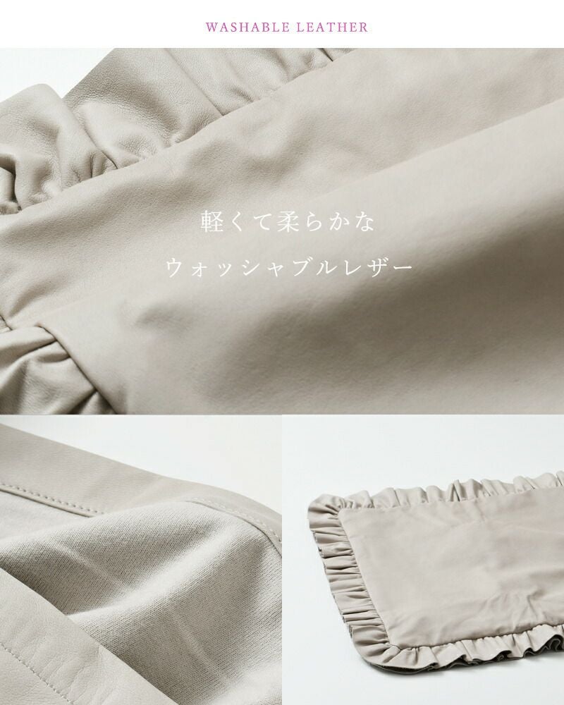 ありそうでなかった、レザーとフリルを組み合わせたデザイン。レザーのモード感と、フェミニンなフリルが大人の洗練をしっかりと約束してくれます。