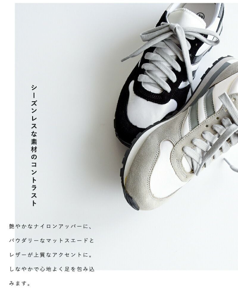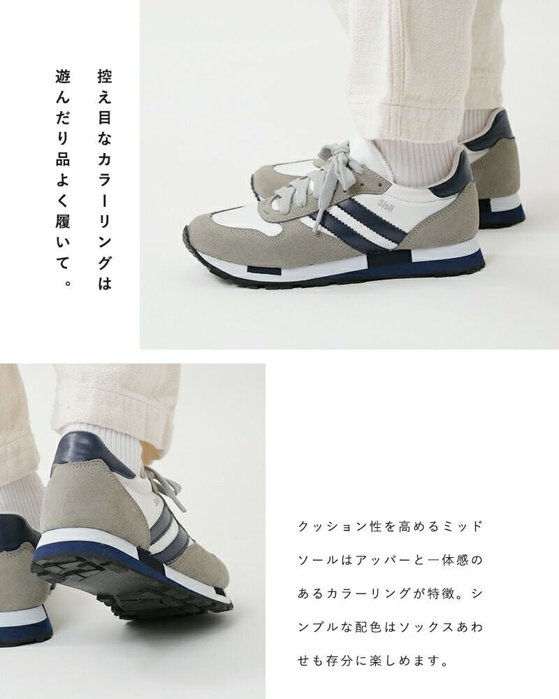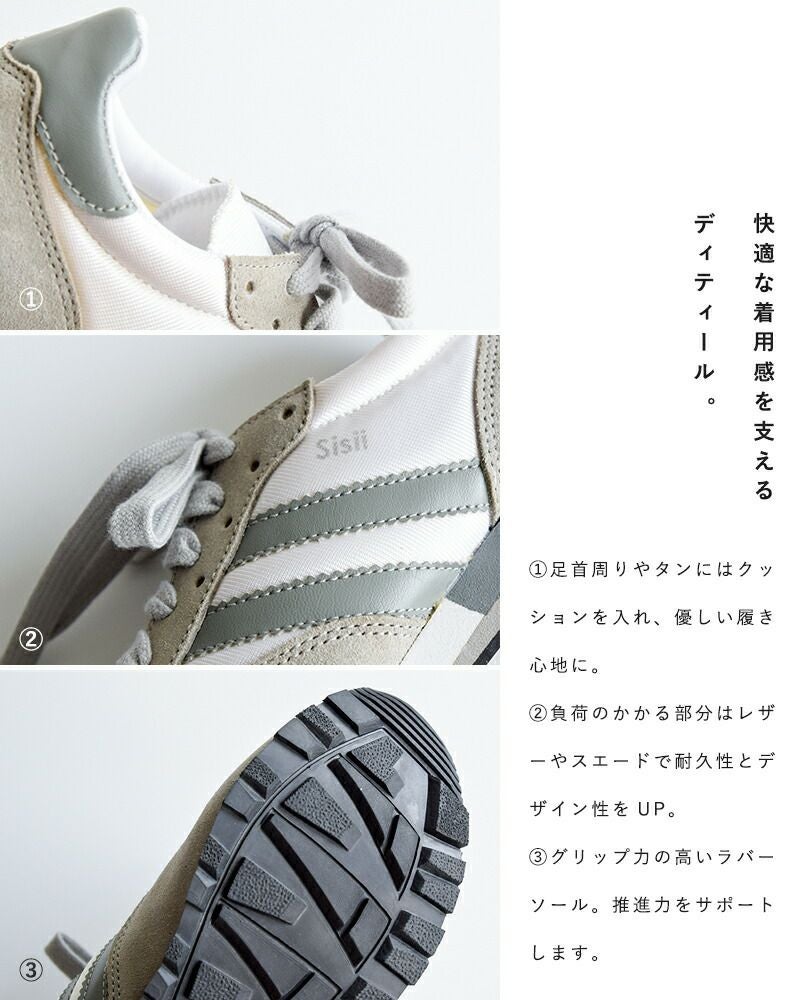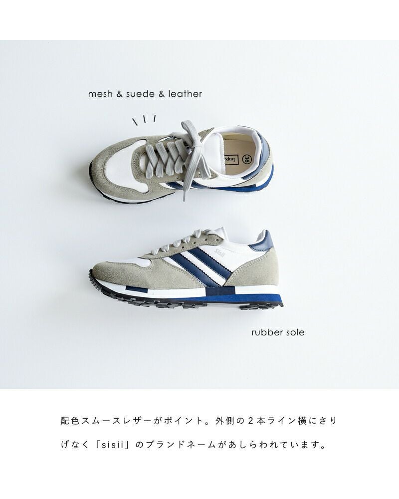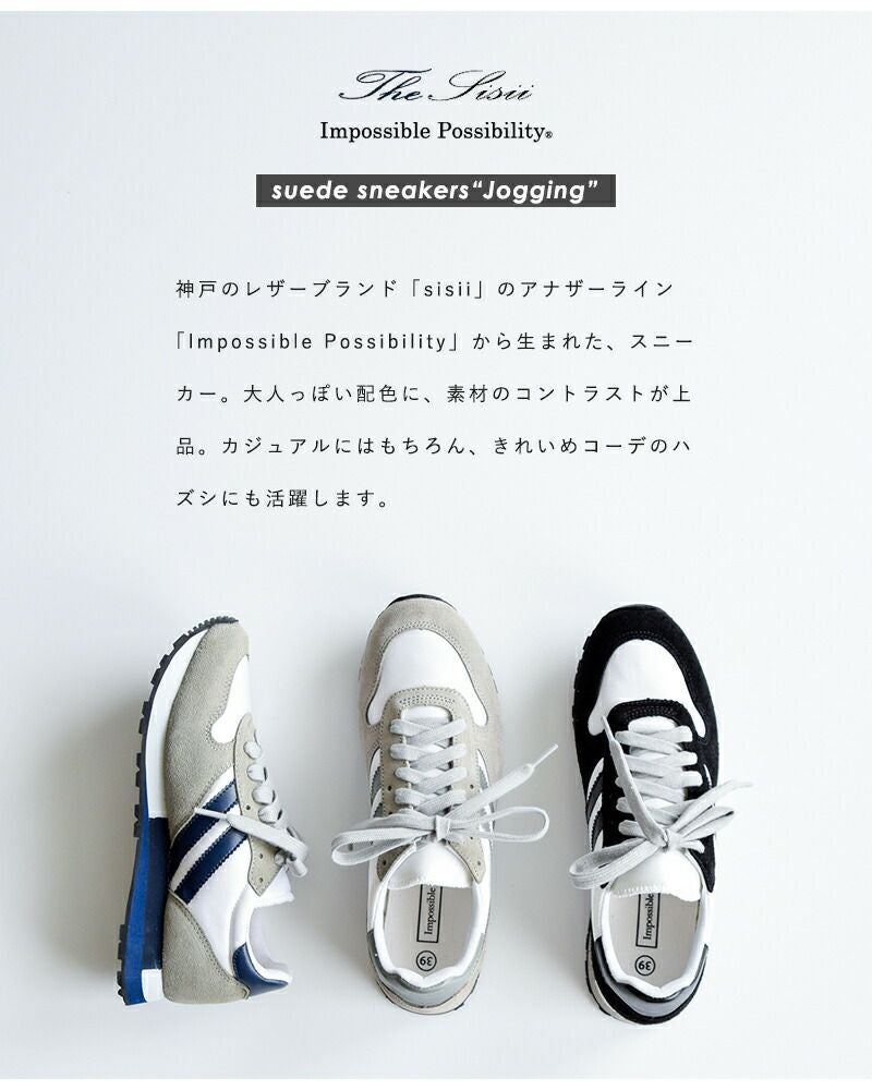 レザーブランド Sisii(シシ)のアナザーライン Impossible Possibility(インポッシブル ポッシビリティ)が展開する、レザージョギングスニーカー“Jogging”のご紹介です。スポーティながら、落ち着いた配色とミニマルなデザインが上品な印象のスニーカー。メッシュ・スエード・レザーのコントラストも好バランス。ソールにもカラーリングを施すことで、アッパーとの一体感を生み出しています。カジュアルなスタイルにはもちろん、キレイめなコーディネートの外しとしても使いやすい一足です。