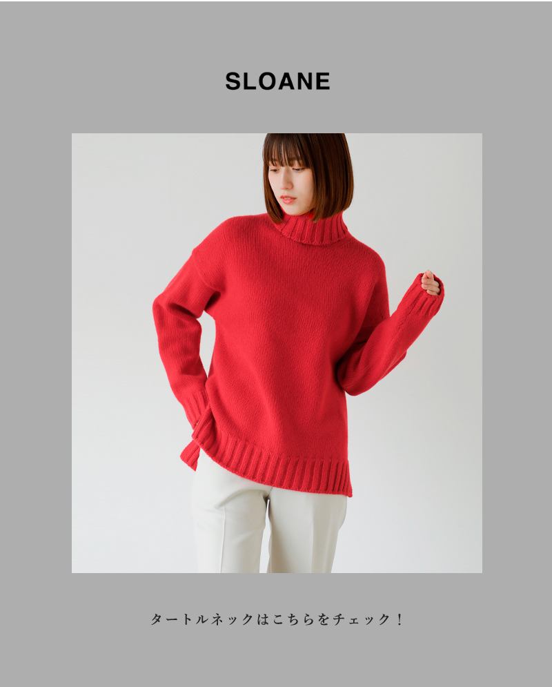 イタリアの紡績に別注した、南オーストラリア・ビクトリア州ジーロンで生産される羊毛、エクストラファインベイビーメリノウールにカシミヤをブレンドしたスローンオリジナル糸を使用。ボリューム感のある仕上がりで、抜群の保温性。繊維が長く優れた耐久性を持つ。クリンプの多さが糸に柔らかさを与え、ふっくらとしたバルキーな仕上がりに。
