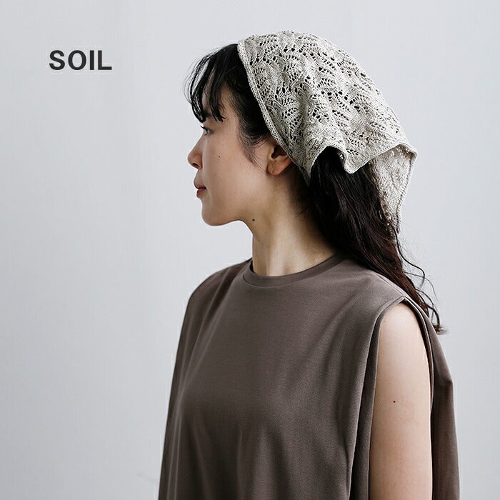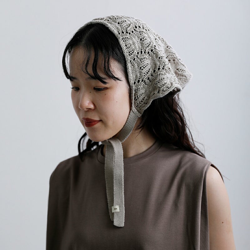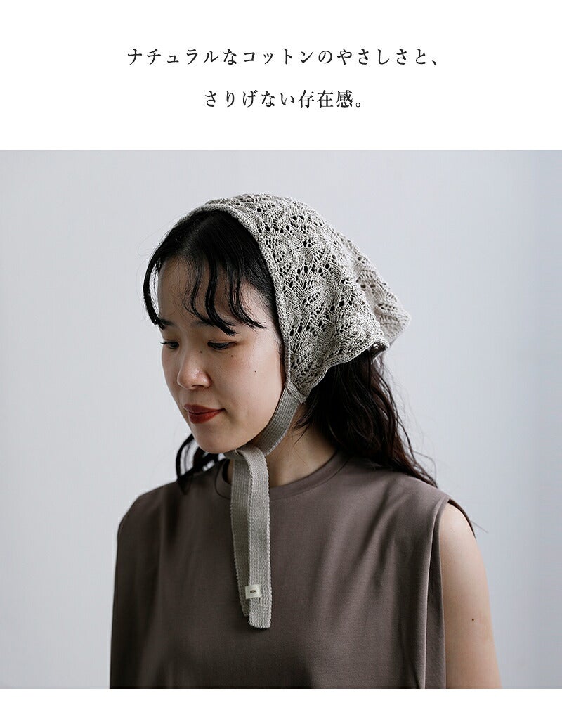 やわらかなコットン素材で仕立てた、ナチュラルな雰囲気漂うバブーシュカ。 シンプルな装いにさっと添えるだけで、コーディネートにやさしいアクセントをプラスしてくれるアイテムです。 さらりとした肌あたりで、季節を問わず使いやすいのも魅力。カジュアルなデニムスタイルにはもちろん、ワンピースやブラウスと合わせたフェミニンな着こなしにもすっとなじみます。 ナチュラルな素材感と程よい存在感で、大人のスタイリングにさりげない遊び心を添えてくれる一枚です。