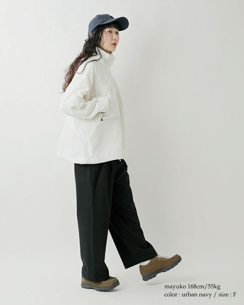 環境に配慮した軽量なリップストップリサイクルナイロンを使用しています。薄手でシャリ感があり、弾力のあるストレッチ素材でシーンを選ばずお使いいただける素材です。nylon 85% polyurethane 15%
