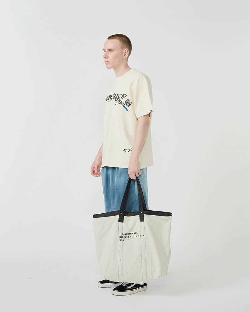 THE NORTH FACE PURPLE LABEL(ノースフェイスパープルレーベル)より、フィールド トートバッグをご紹介します。2枚仕立てのフィールドトートバッグ。表裏で使用が出来る2way仕様です。表面にリサイクルポリエステルタフタを使用。環境に配慮したフッ素系化合物を使用しないPFCフリーのはっ水加工で機能性をプラス。裏面に生成りのオーガニックコットンリップストップを使用。全く表情の異なる生地使いで、スタイリングの雰囲気を変えて楽しむことが出来ます。