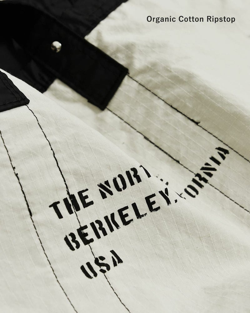 裏面に生成りのオーガニックコットンリップストップを使用。THE NORTH FACE Berkeleyタイポグラフィックがプリントされています。
