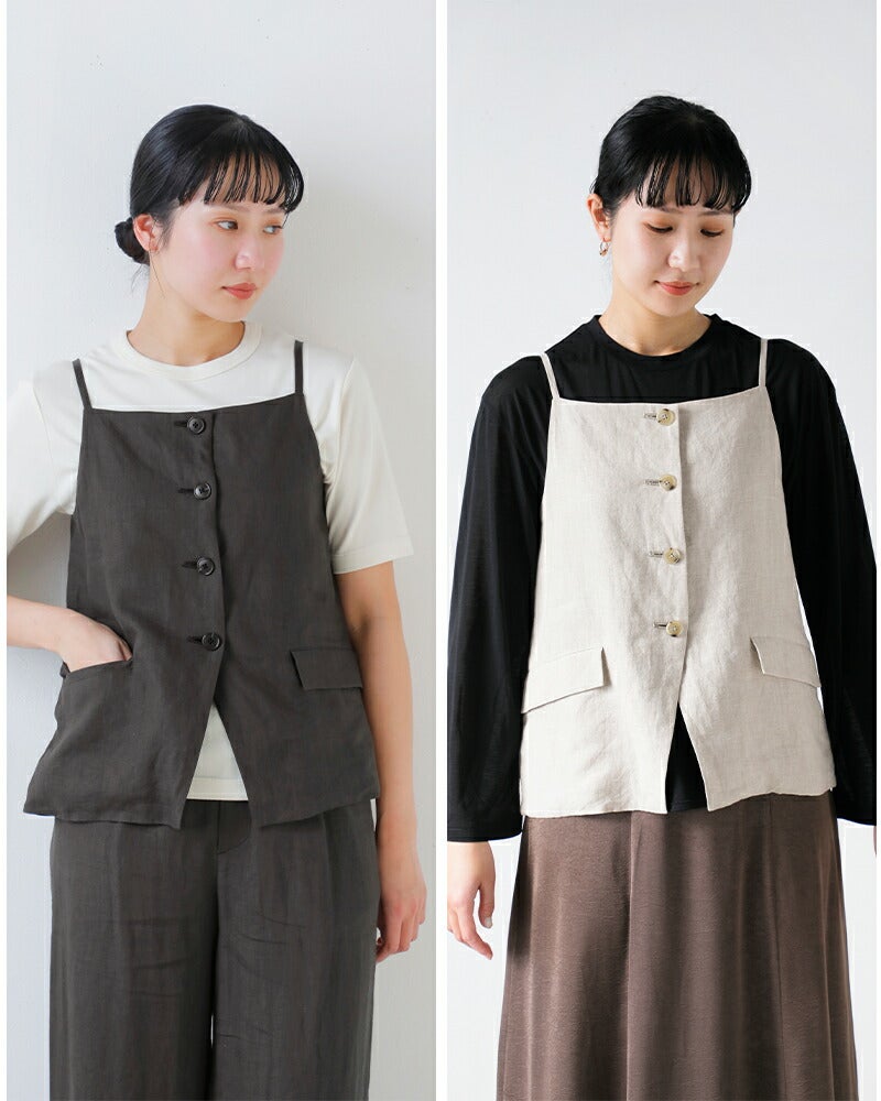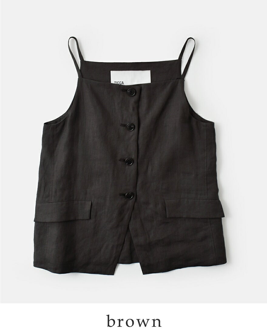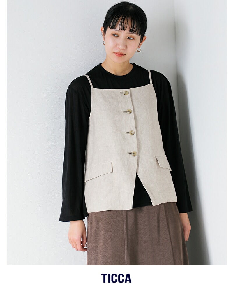 他の画像を見る 上質ネン素材軽やか洗練されたキャミソール型ナチュラルな風合い程よいハリ感シンプルながらも存在感レイヤードスタイル 【クーポン対象】TICCA ティッカ リネン キャミソール ベスト tbfs-413 レディース 2026ss新作 春夏 ¥ 26,400 ¥ 26,400 税込 クーポン対象 販売期間 2026/04/27 10:00 〜 カートに入れる お気に入りに登録する