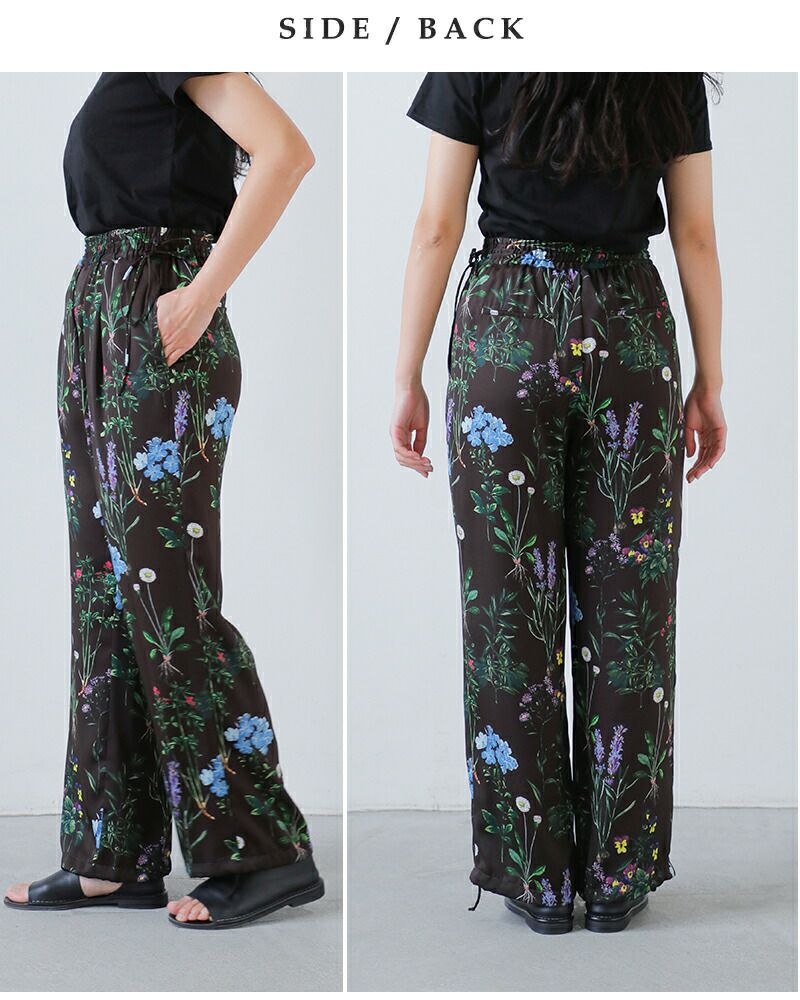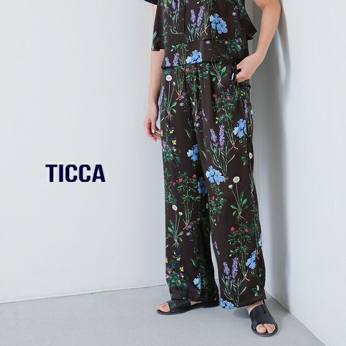 TICCA(ティッカ)より、フラワー プリント パンツのご紹介です。さまざまな植物が散りばめられたプリントは華やかで存在感抜群なパンツです。ウエストゴムのイージー仕様で、太めのストレートシルエットでラフに穿けるのも◎。薄手でさらっと滑る肌触りが心地よく、春夏のコーディネートに大活躍します。