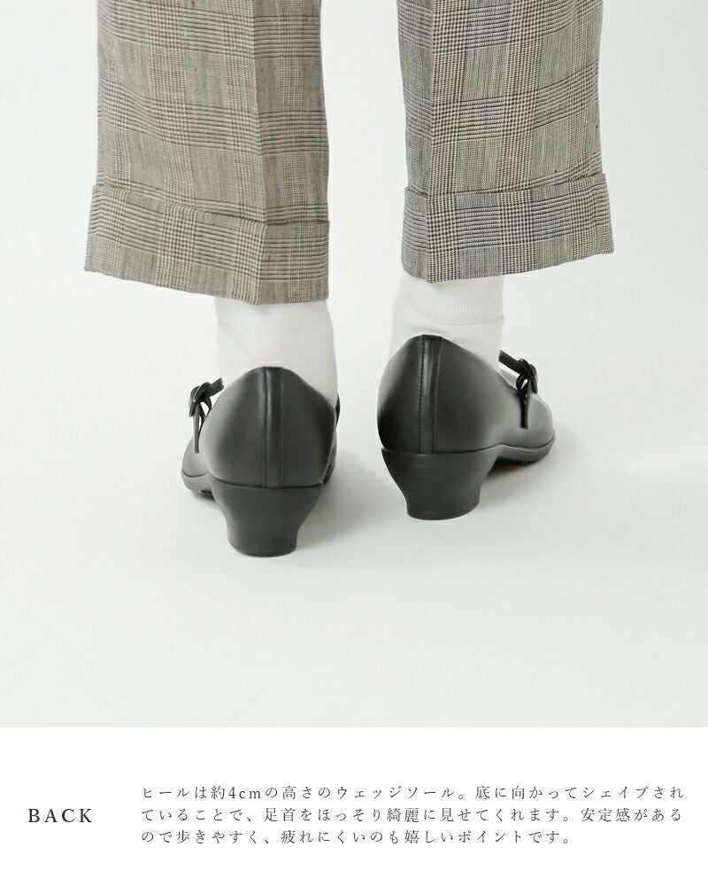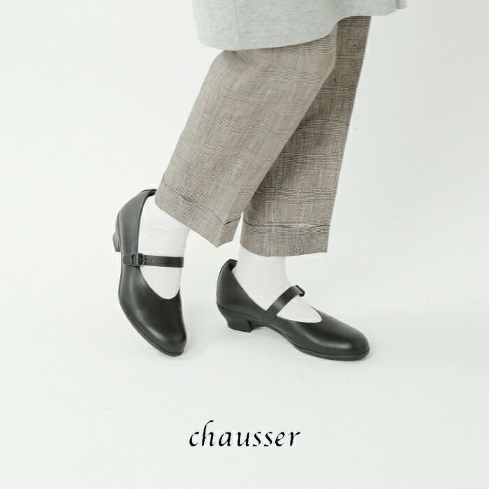 TRAVEL SHOES by chausser(トラベルシューズ バイ ショセ)よりレザーワンストラップシューズが到着しました。今モデルはウェッジソールを採用し、少し高めのヒールが特徴。ショセらしいマニッシュなデザインと女性らしいシルエットは足元に存在感を与えてくれます。ヴィブラム社製のラバーソールを使用し、小回りの利く一足。あらゆるシーンで活躍間違いなしです。