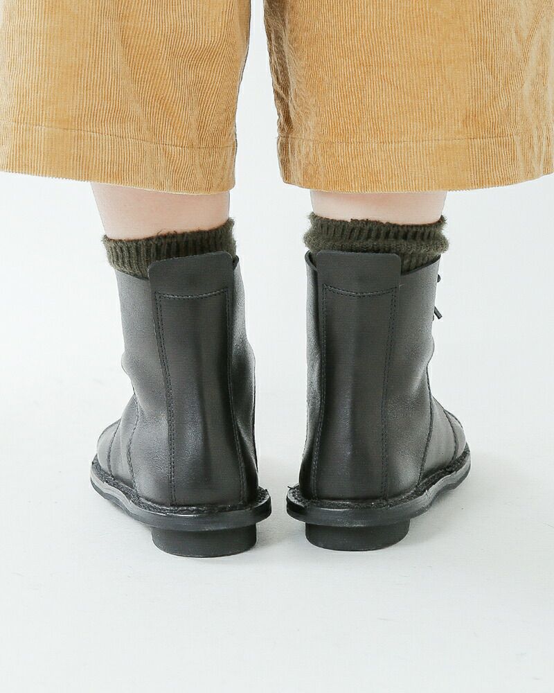 trippen(トリッペン)は、靴職人のマイスター(特別技術資格者)で、医療用矯正靴などの製作にも携わっていたミヒャエル・エーラーと、それまでも靴や服のデザイナーとして活躍していたアンジェラ・シュピーツの2人によって1992年ベルリンの小さなギャラリーで誕生しました。人間工学に基づいた履き心地の良さを追求し、多くの賞を受賞した洗練されたデザインにより、流行に左右されず永く愛用できるアイテムが豊富。一つ一つ手作業で丁寧に作られおり大量生産をする事はできない、trippenのアイテムは自社工場とイタリアの限られた工房のみで、自分たちの目の届く所で作られています。それは一人一人からの要望にお答え出来る製造に密着した生産体制を維持しており、多種多様な製品を満足いただける品質で提供し続けるには、遠く離れた大工場では不可能だと考えているからです。trippenの名前の由来は、『よちよち歩き』という意味。昔の貴婦人は雨の日に靴が汚れないように靴を履いたうえからサボのような木靴を履いて『よちよち』歩いていました。trippenが最初に発表した『履けない木のサンダル』のコレクションが、この木靴をイメージしています。人間工学に基づき徹底した履き心地の追求を目指すtrippenの名前は、『よちよち』としか歩けない姿を形容していたのです。