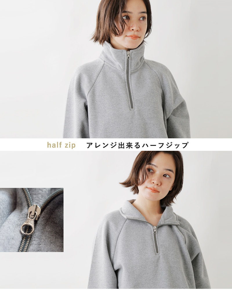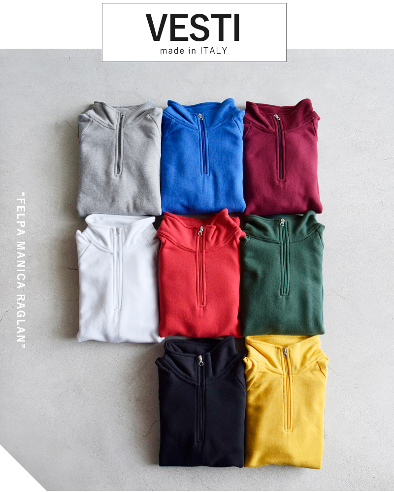 イタリア製の高品質なスウェット生地を使用したトレンドのハーフジッププルオーバー VESTI ヴェスティ コットン 裏起毛 スウェット ハーフジップ スタンドカラー プルオーバー “FELPA MANICA RAGLAN” it503-ms 2025aw新作 レディース
