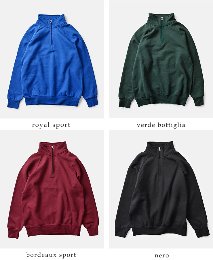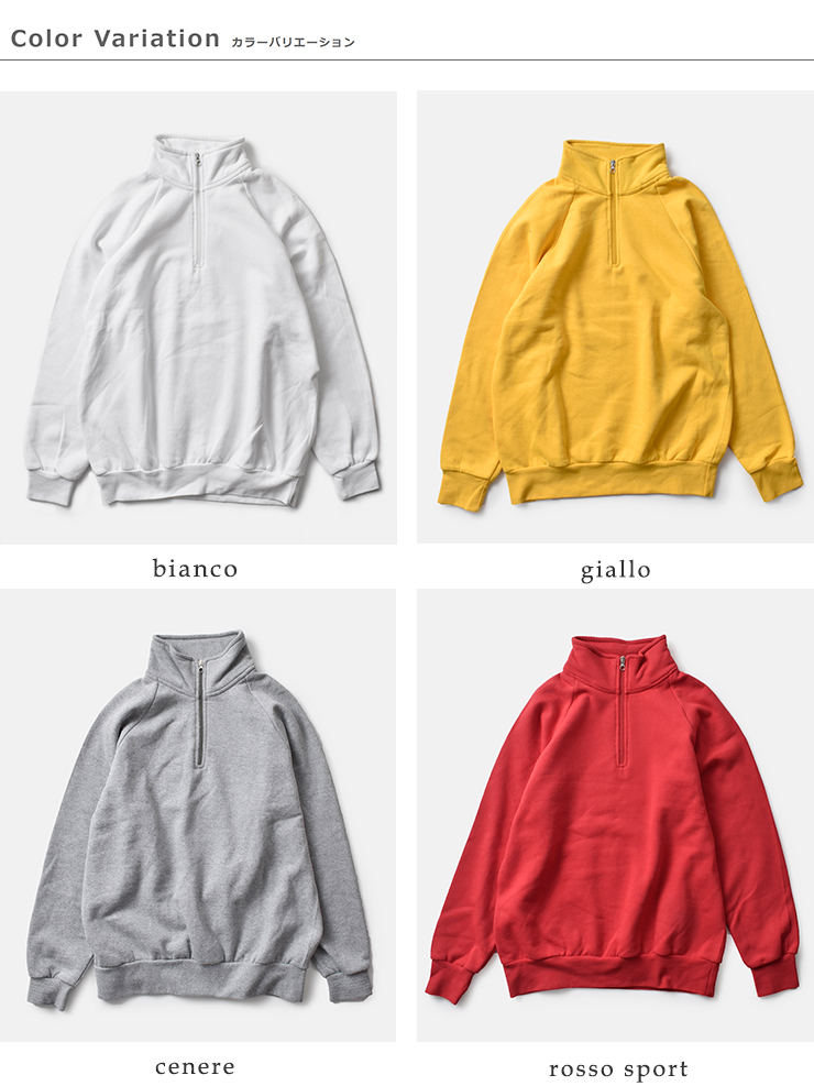 コットン 裏起毛 スウェット ハーフジップ スタンドカラー プルオーバー “FELPA MANICA RAGLAN” it503