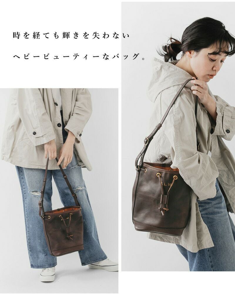 VASCO(ヴァスコ)よりOLD OIL レザー ワンダー パース バッグ スモール “LEATHER WANDER PURSE BAG SMALL”のご紹介です。フレンチアンティークをモダナイズした『B.L.W.シリーズ』のレザー巾着バッグのスモールサイズ。上品な印象のショルダーは長さを調節でき、ショルダーバッグ、ワンショルダーバッグとしてご使用いただけます。内装にポケット1つ付き、長財布も収納可能なので必要なものを入れて上品におでかけができます。使い込むほどに艶と風合いが増し、長く経年変化をお楽しみいただけるヴィンテージのような風合いに仕上げたオリジナルレザー「OLD OIL」を使用。トレンチコートなどと合わせて全体のヴィンテージ感を楽しんだり、シンプルコーデの主役としたり、合わせ方を考えるだけで楽しくなるバッグですね。