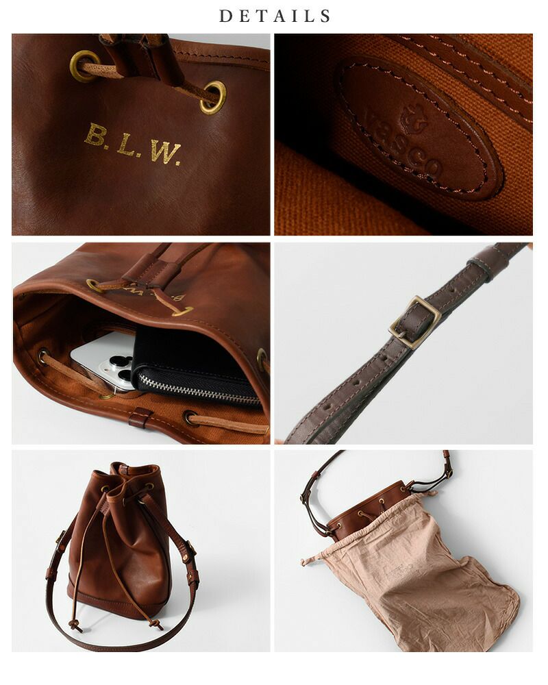 「旅の道具」というコンセプトのもと、バッグ・革小物を想像するブランドであるVASCO。それには「淘汰されていくなかで残り続けるもの」という意味が込められています。その思いが伝わるような、時を経ても輝きを失わない美しさを感じるバッグ。フレンチアンティークをモダナイズした『B.L.W.シリーズ』のレザー巾着バッグのスモールサイズ。『荷物を詰め込んで放浪したくなる』を意味するBaggage Load Wanderlustの頭文字『B.L.W.』が刻印されます。