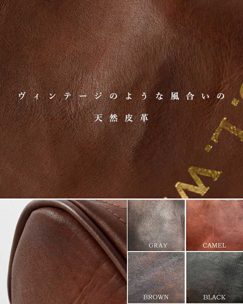 ミモザやチェスナットから抽出されたタンニンで鞣された、姫路産フルベジタブルタンニンレザーを“丘染め” と呼ばれる伝統的なハンドメイド製法で一枚一枚丁寧に染め上げた後、オイルをたっぷり染み込ませ、独自のコガシ加工によりヴィンテージのような風合いに仕上げたオリジナルレザー「OLD OIL」を使用。使い込むほどに艶と風合いが増し、長く経年変化をお楽しみいただけます。