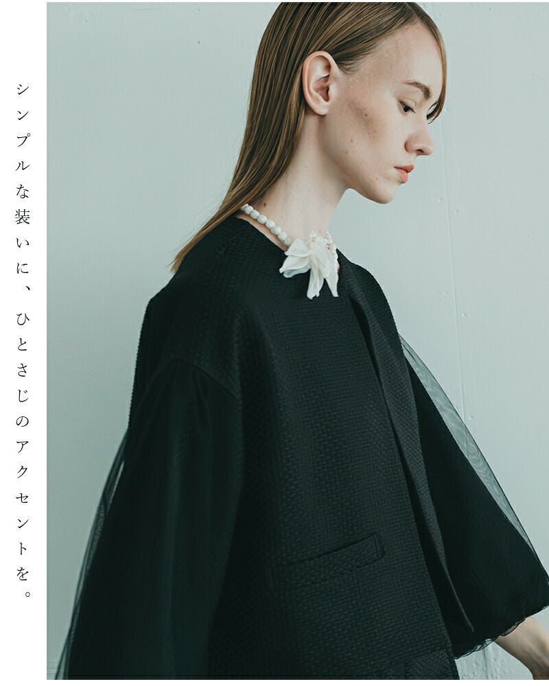 特別な日はもちろんですが、普段着にトッピングしても可愛いネックレスとブローチ。シンプルコーデにプラスするだけで、品のあるスタイリングに仕上がります。