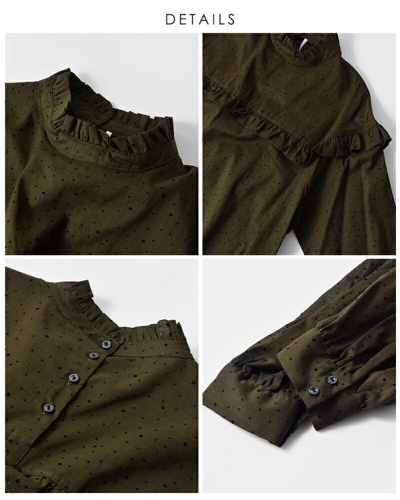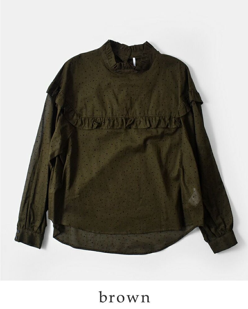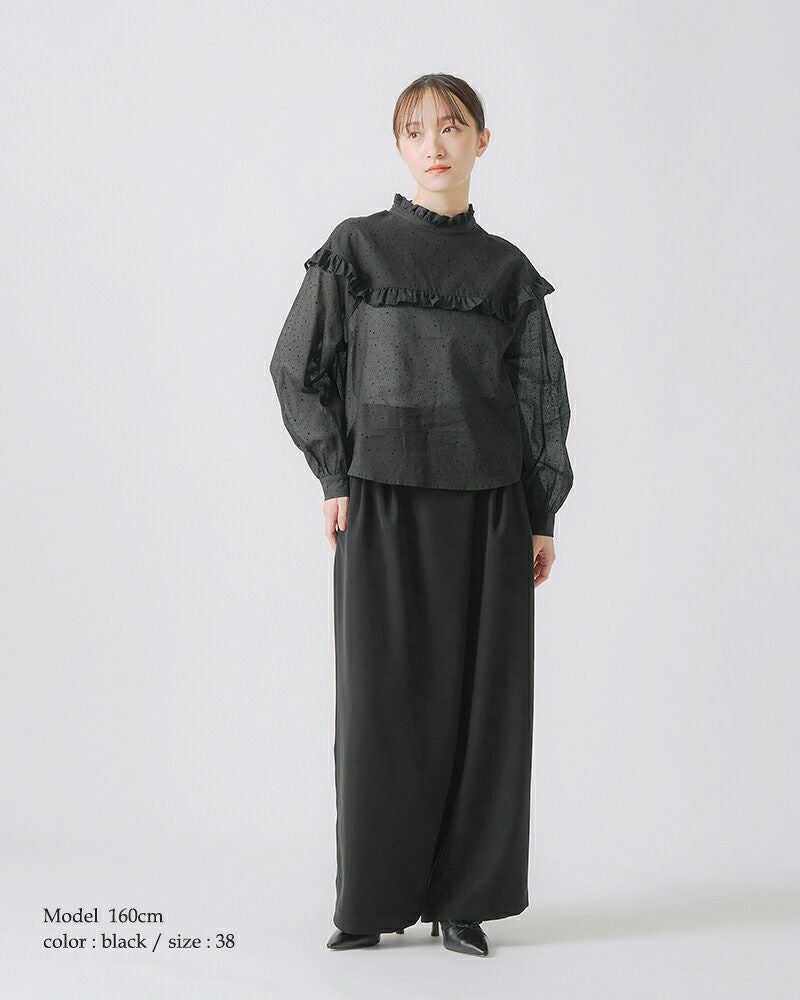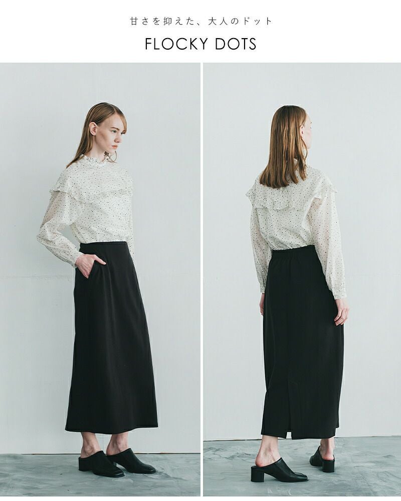 フロッキードットがシーズンらしいフリルブラウス。