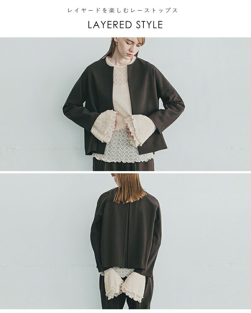 袖先に、さりげない華やぎを。レイヤードを楽しむレーストップス。