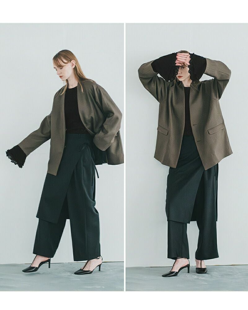 カジュアルなアイテムとのレイヤードもしていただけ、着回しのきく1枚です。