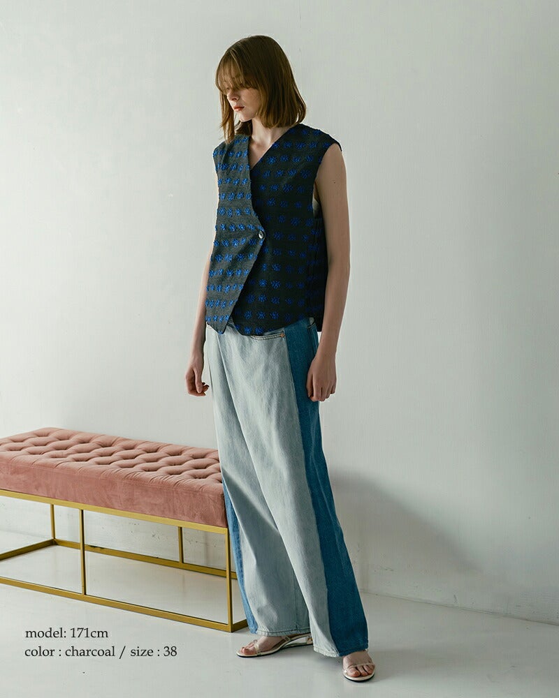 凹凸のある立体感で魅せる、マニッシュなアシンメトリーベスト。