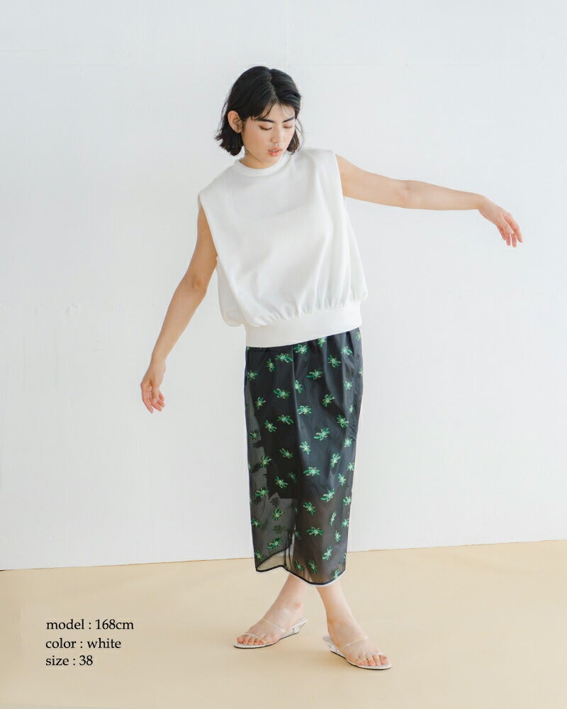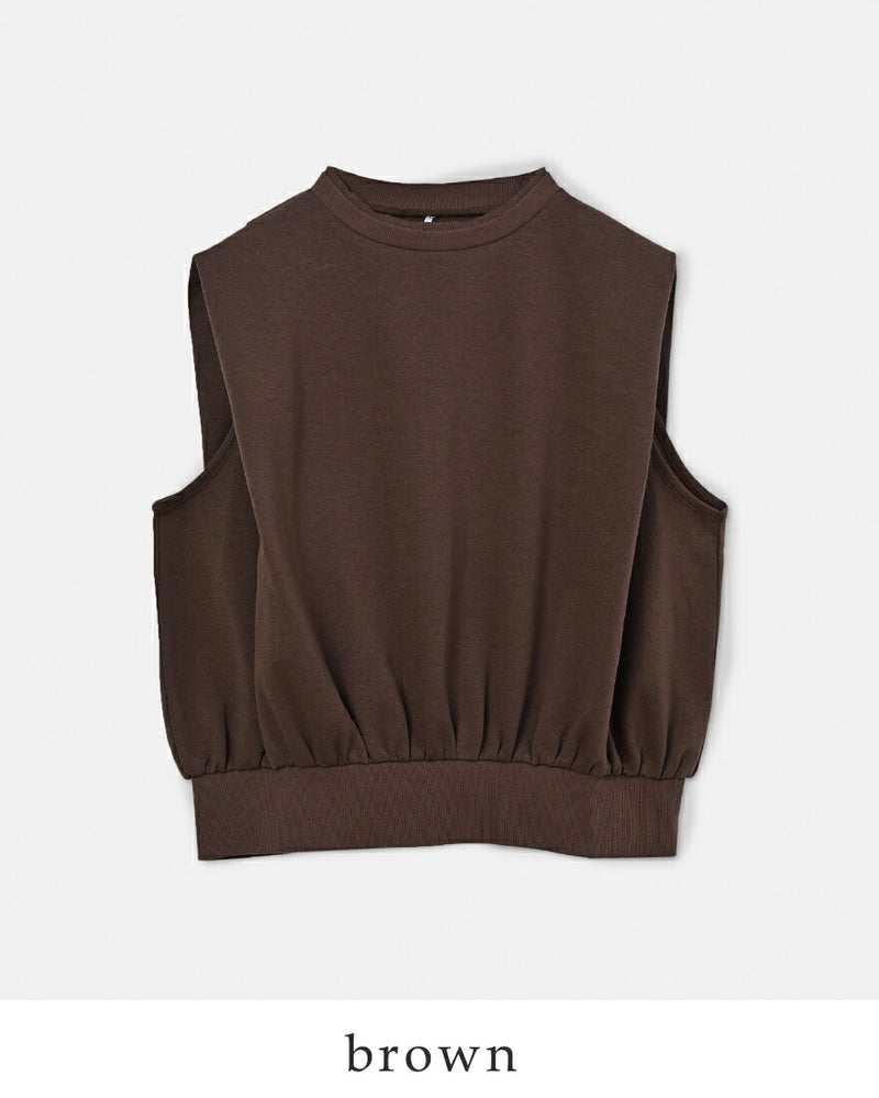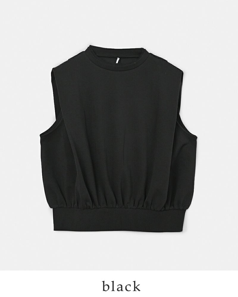 whyto(ホワイト)より、ショルダー デザインタック トップス “shoulder tuck tops”のご紹介です。ショルダーにデザインタックを入れたトップスです。柔らかく少し肉厚の膨らみのあるカットソー素材を使用。肩周りにボリュームを持たせ、二の腕の隠れるラインに設定。1枚でも、レイヤードベストとしても着用可能です。