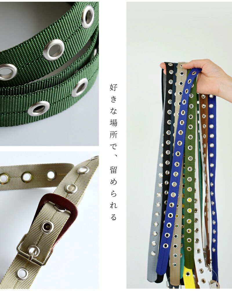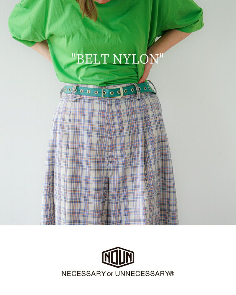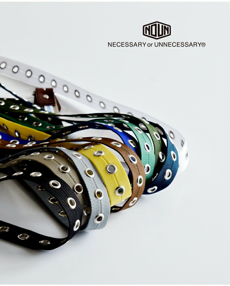 NECESSARY or UNNECESSARY(ネセサリーオアアンネセサリー)よりナイロンベルトのご紹介です。発色の良いナイロンとハトメが印象的な細めの作りで、フリーサイズのロングタイプなので腰から垂らして着用すればアクセサリーとしても良いアクセントになります。幅広いサイズ調整に対応するので、男性・女性問わずお使い頂けるように仕上げられています。お手頃価格なので、色違いで揃えるのもオススメです。