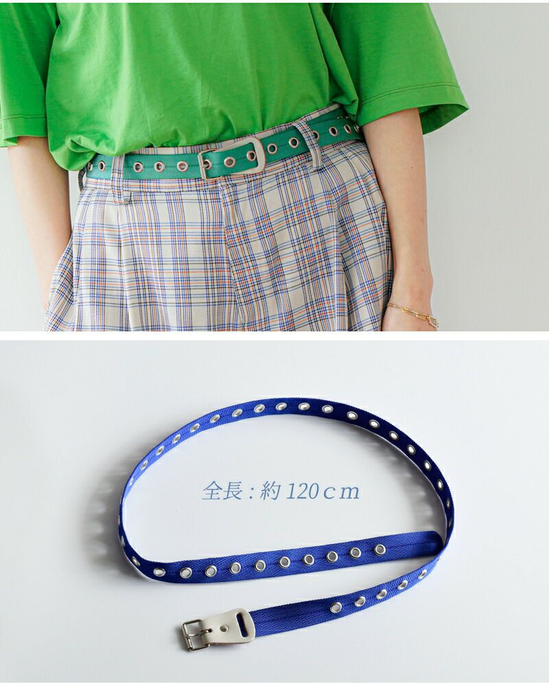 発色のよいカラーと、ズラッと並んだハトメが、スタイリングのアクセントになっています。