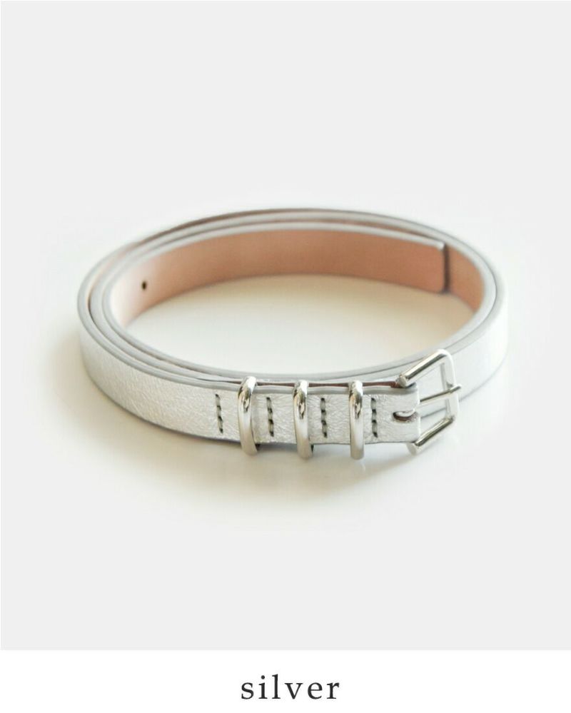 3連 の メタルバックル が 印象的 な メタリック と プレーン の 細め の レザーベルト【送料無料】【再入荷】 【40%OFF】LEFIJE レフィエ