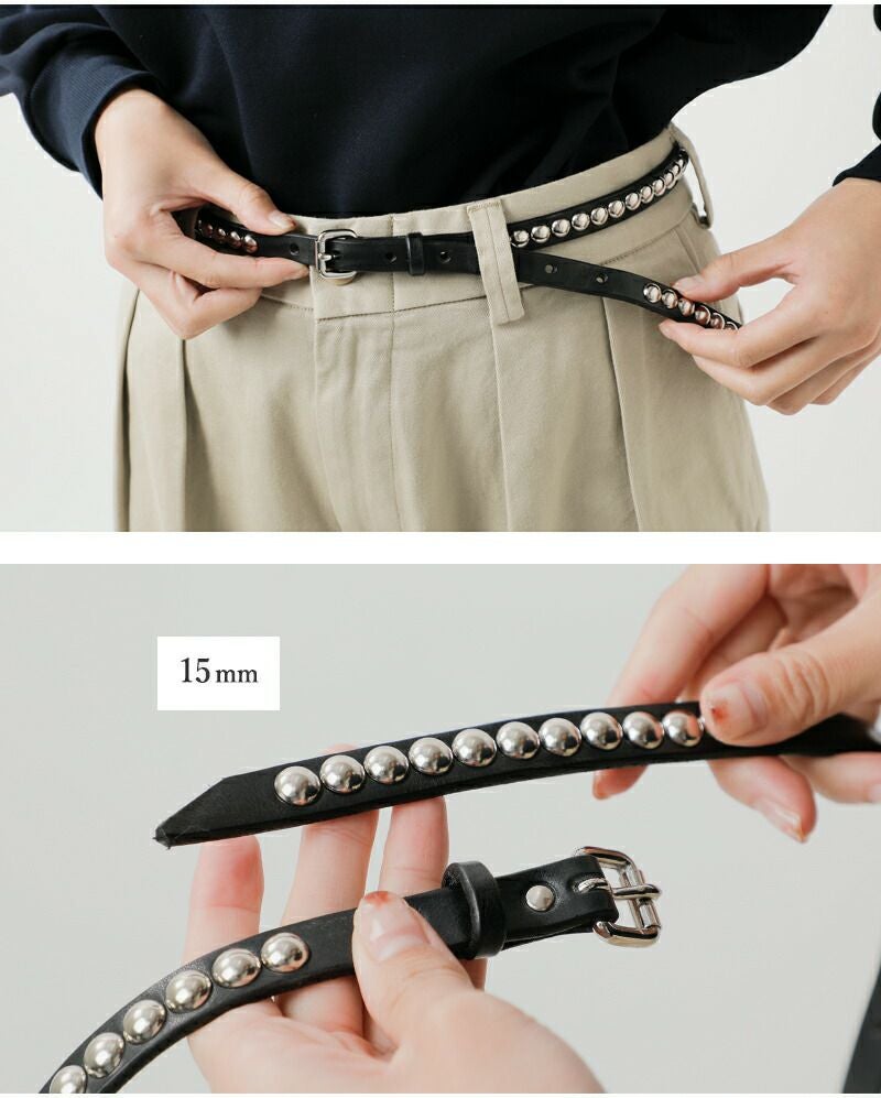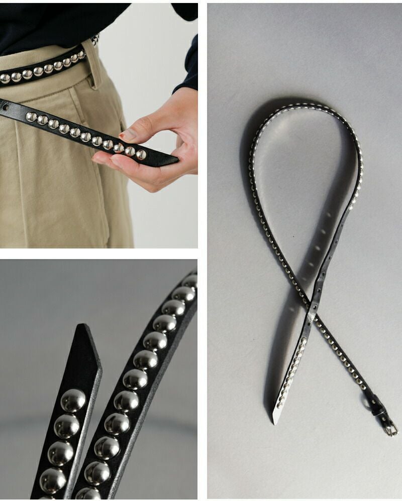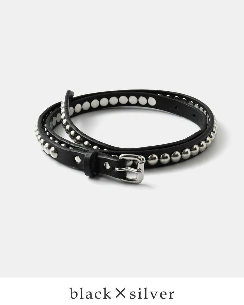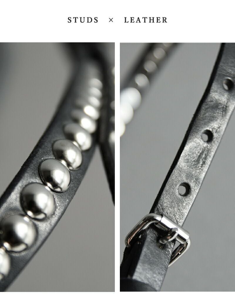 ●しなやかなレザーにシルバーのラウンドスタッズが存在感を放ちます。