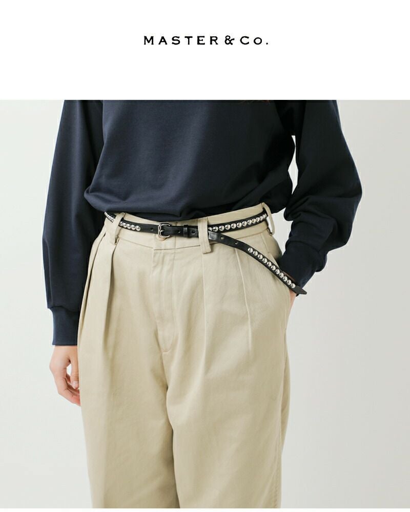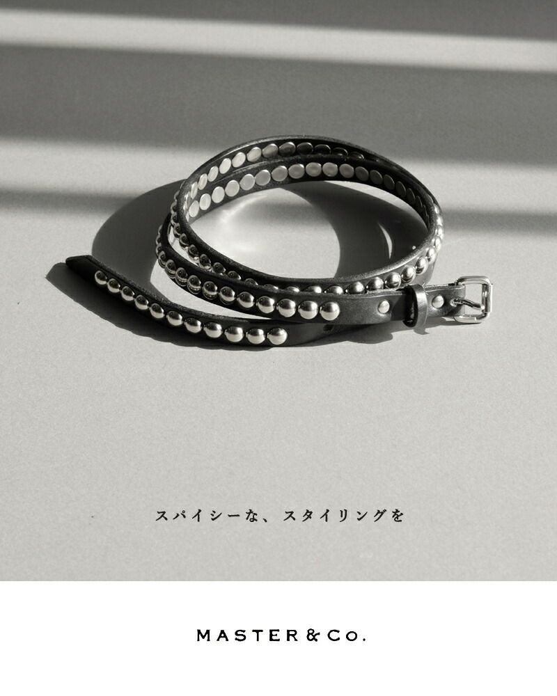 MASTER&Co.(マスターアンドコー)より、デイトナ スタッズ レザー ベルトのご紹介です。タックインしたときのポイントになる、インパクトのあるスタッズベルト。しなやかな天然皮革を使用しているので使い始めから扱いやすくなっています。シルバーのスタッズデザインがシンプルなコーデを一気に印象付け、モードな着こなしを表現してくれます。