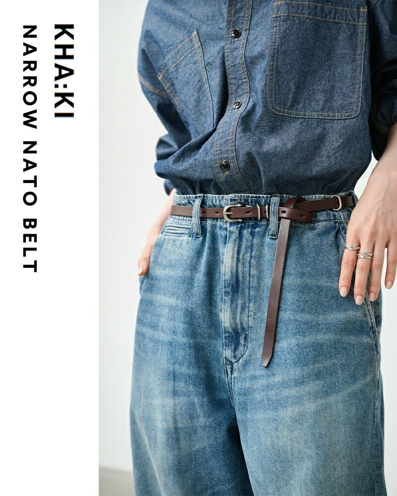 リング使い印象的ナローベルト細身存在感アクセントしなやか耐久性栃木レザー国内工場ウエストマークにも活躍汎用性高いレザーベルト 【クーポン対象】kha:ki カーキ カウレザー ナローベルト “NARROW NATO BELT” mil26hac3030 レディース 2026ss新作 春夏