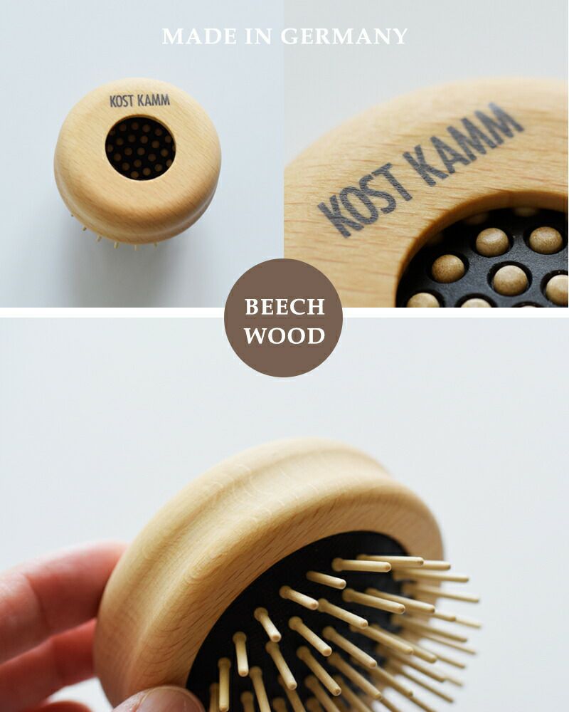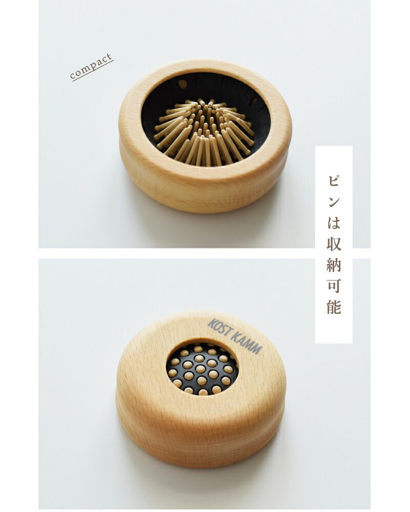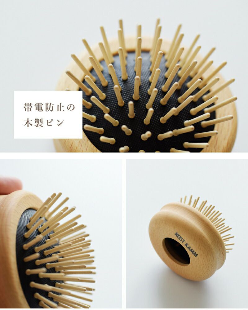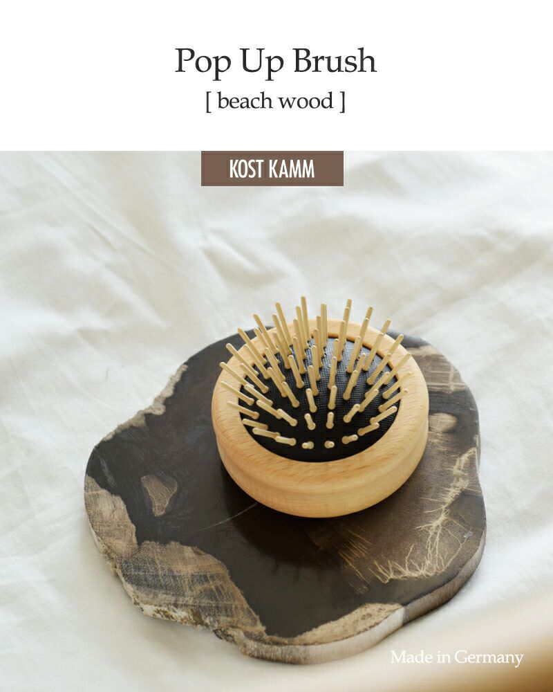 ドイツのハンドメイド、ヘアアクセサリーブランドKOSTKAMM(コストカム)より、ビーチ ウッド ポップ アップ ブラシをご紹介します。滑らかな手触りのビーチウッドを使用した、丸い形が可愛らしいブラシです。手のひらに収まる小さなサイズで、ピン部分を中に入れて、コンパクトに収納することが出来ます。ポーチに入れて、持ち歩きや旅行にも便利。どなたにもお使いいただけるお洒落なアイテムで、プレゼントにもおすすめです。