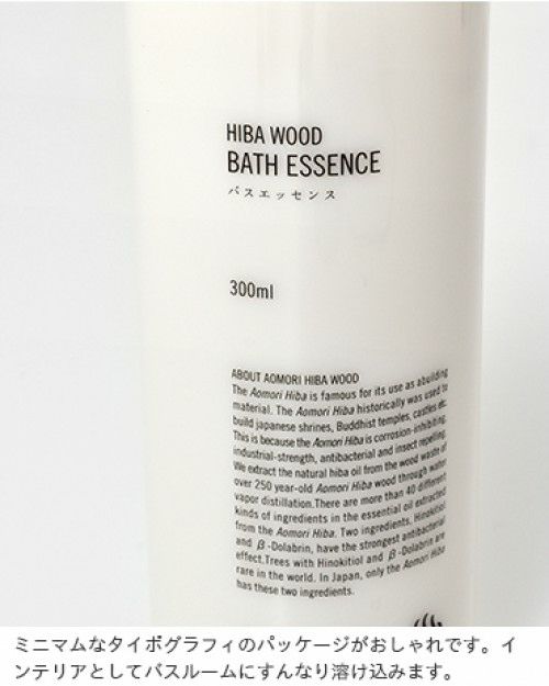 Cul de Sac(カルデサック)より、青森ヒバ精油配合入浴液“BATH ESSENCE”のご紹介です。青森ヒバから取れる精油の成分に加えプロテオグリカン、ヒアルロン酸が配合された保湿効果に優れた入浴液です。透明のボトルにメモリが付けられているので、使用量や残量がわかりやすいです。ボトルはプラスチック製なので、落として割れる心配もありません。シンプルで洗練されたデザインもポイント。ギフトとしても喜んでいただけるアイテムです。