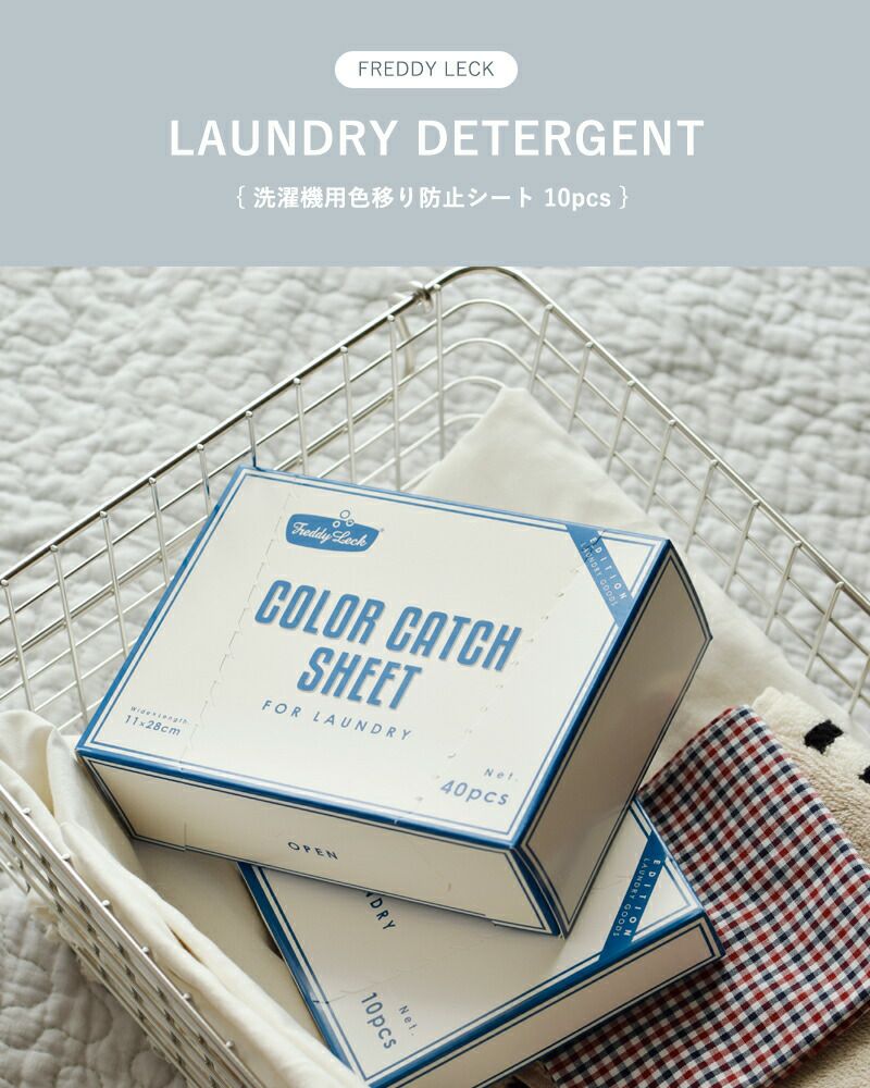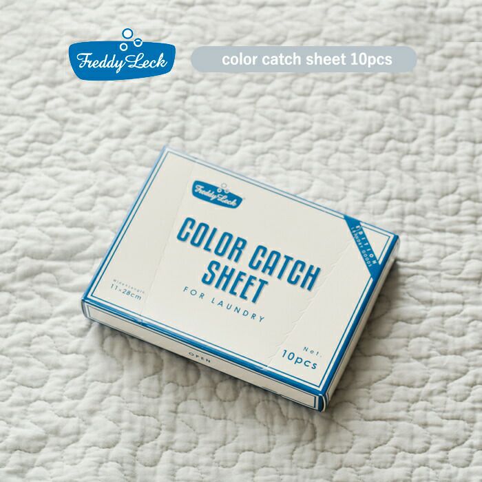 ドイツ発ランドリーメーカーFREDDY LECK(フレディ レック)より、カラーキャッチシート 10Pをご紹介します。カラーキャッチシートは、衣類などから出る染料をシートが吸着して、他の衣類などへの色移りを防いでくれる便利なお洗濯アイテムです。青と白のお洒落なパッケージで、ランドリールームに置くだけで楽しくなりそうなアイテムです。