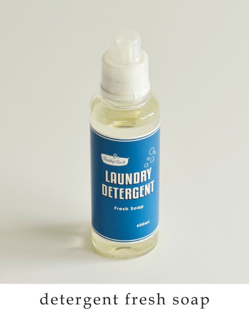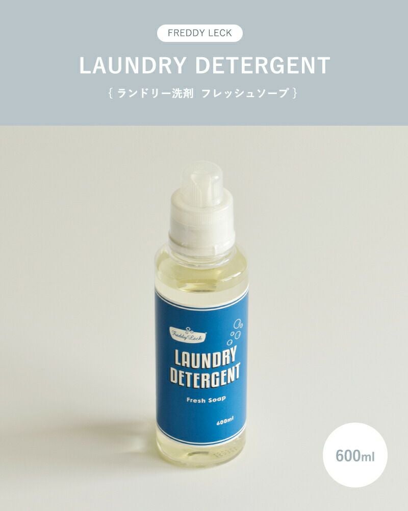 ドイツ発ランドリーメーカーFREDDY LECK(フレディ レック)より、ランドリー洗剤 フレッシュソープをご紹介します。フレディ レック・ウォッシュサロン トーキョー オリジナルの洗剤。漂白剤・蛍光増白剤・着色料無添加で、酸素系漂白剤と併用しやすいようシンプルな設計に。 石けんを配合し、合成界面活性剤の使用量を削減しました。衣類などをやさしく洗い上げます。 ドラム式洗濯機にもオススメ。サロンユーザーに愛されているフレッシュソープの香りです。