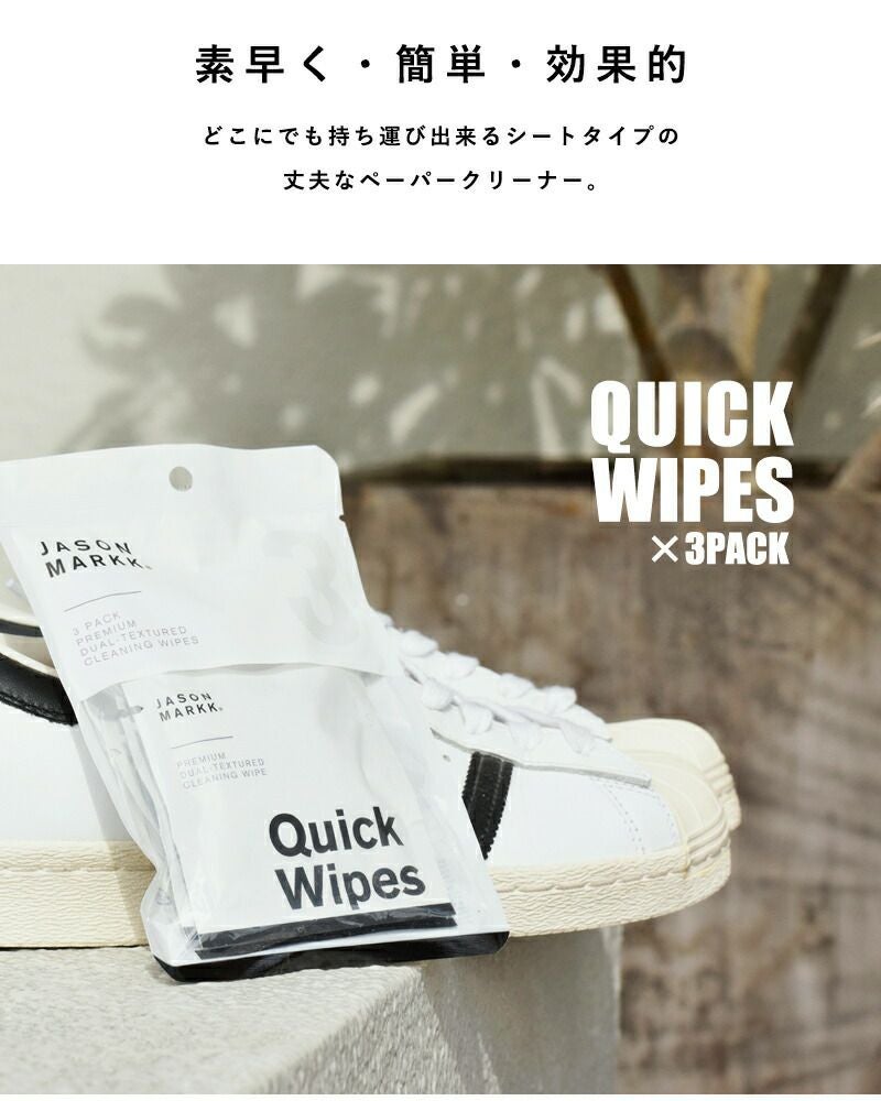 他の画像を見る 簡単 手軽 素早く ケア できる 高い クリーニング 能力と 耐久性 を併せ持つ ペーパー タイプ の クリーナー【再入荷】 jason markk ジェイソンマーク デュアルテクスチャードシュークリーニングワイプ“QUICK WIPES”3PACK quickwipes-3pack-fn【海外出荷不可】 ¥ 825 ¥ 825 税込 詳細を見る お気に入りに登録する