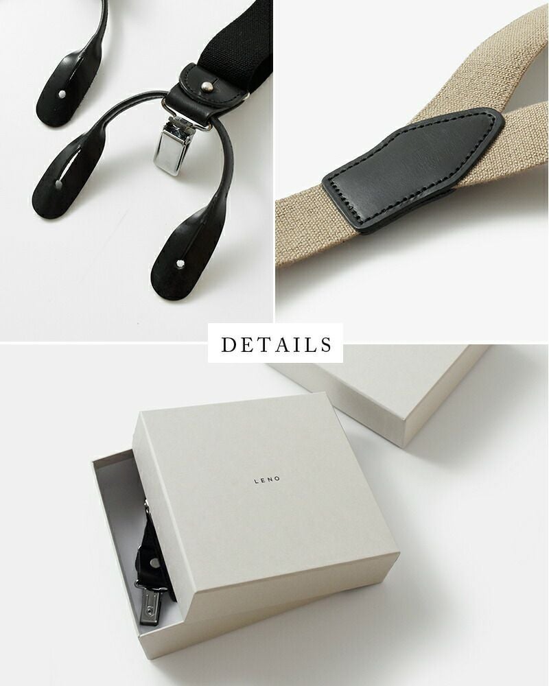 他の画像を見る クラシカルなボタン留めもクリップ留めも対応のYバックデザインサスペンダー LENO リノ カウレザー 2way サスペンダー “2WAY SUSPENDER” leno-ac010-tr ユニセックス ¥ 20,900 ¥ 20,900 税込 SOLD OUT カートに入れる お気に入りに登録する