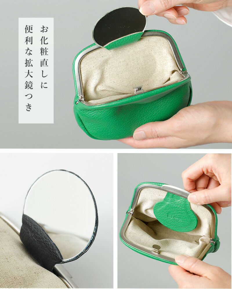 他の画像を見る ワンタッチでぱちんと開け閉めが出来る革本来の自然なシボがとても上品な風合いのゴートレザーを使用したミラーポーチ mononogu モノノグ ゴートレザー 変形 がま口 ミラーポーチ “Anura Pouch” ar3-gsレディース 2026ss新作 春夏 ¥ 9,350 ¥ 9,350 税込 詳細を見る お気に入りに登録する