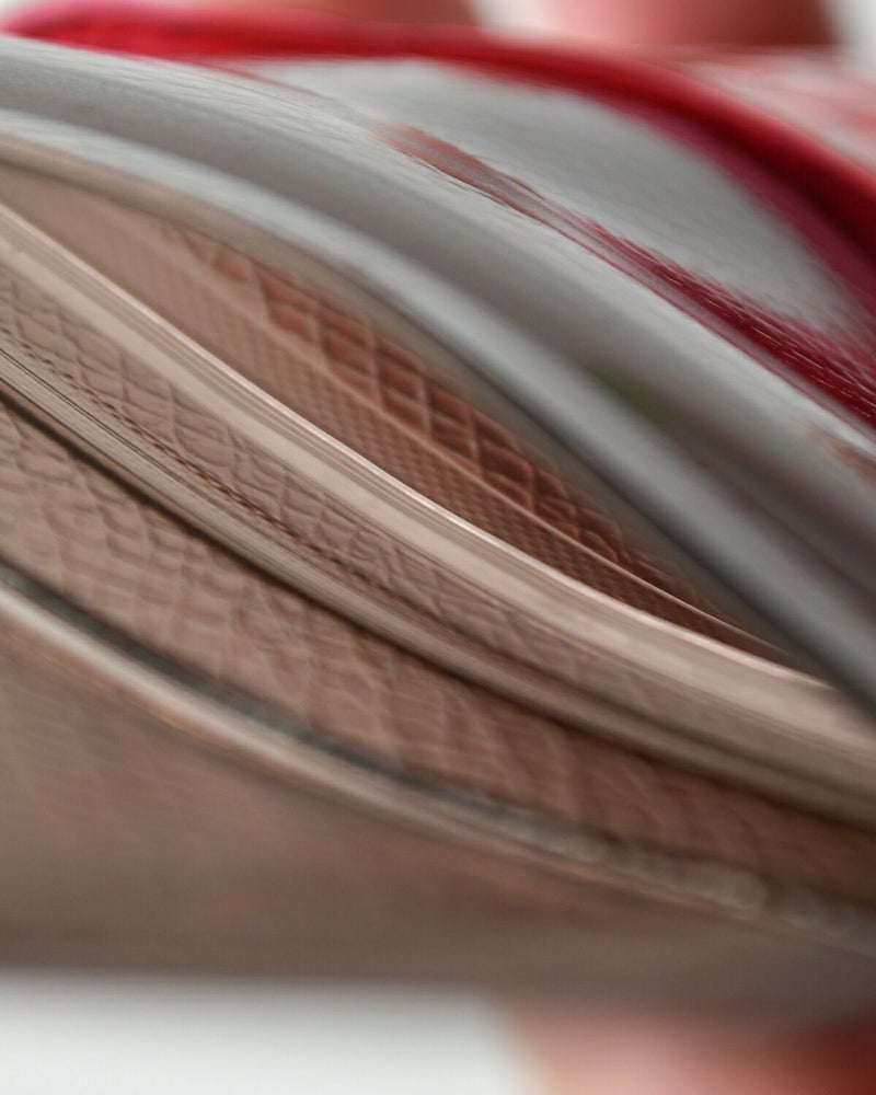 クロコダイルとシュリンクレザーの表面感をエンボスにて表現したシリーズアイテム。