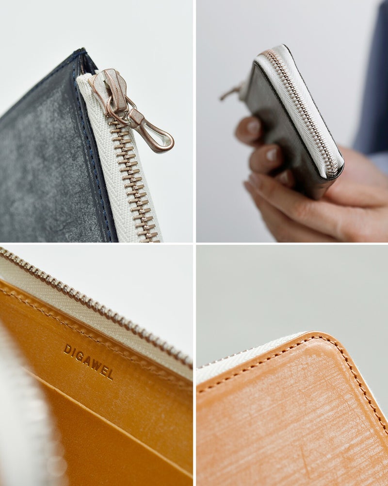 ●ファスナーには加工を施したririzipを採用。つまみは少しカーブをかけて持ちやすいような設計に。