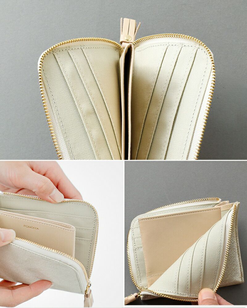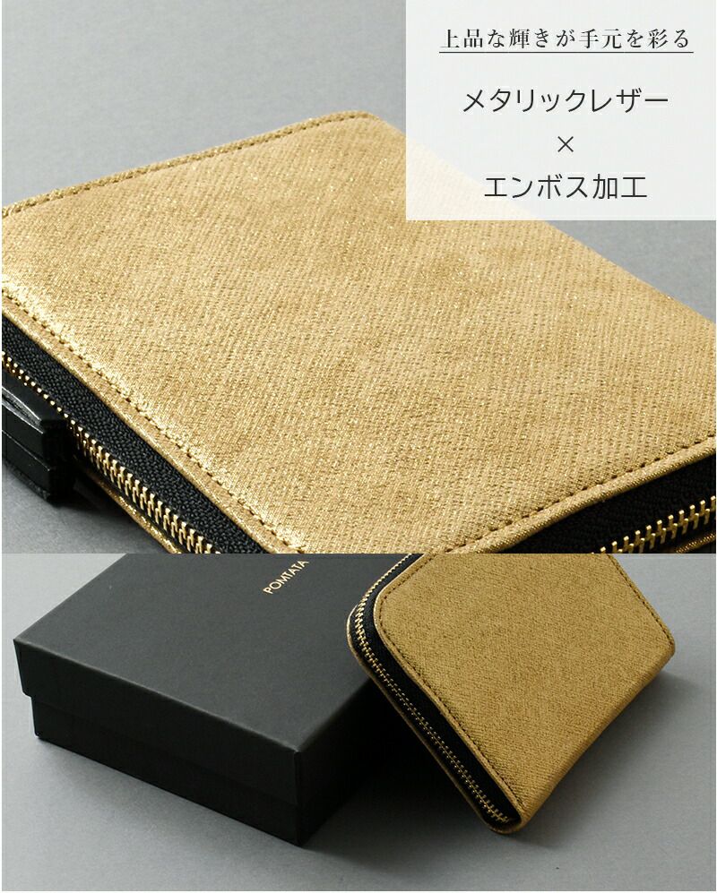 POMTATA(ポンタタ)よりエンボスレザーLジップショートウォレット“HAK SERIES”のご紹介です。繊細な質感のサテン生地のようなメタリックレザーを表面に使用した、雰囲気のあるショートウォレット。カードポケットも完備して小さいながら収納力があります。トレンドのミニバッグとも相性抜群。シンプルながらも華やかで上品な印象のウォレットです。