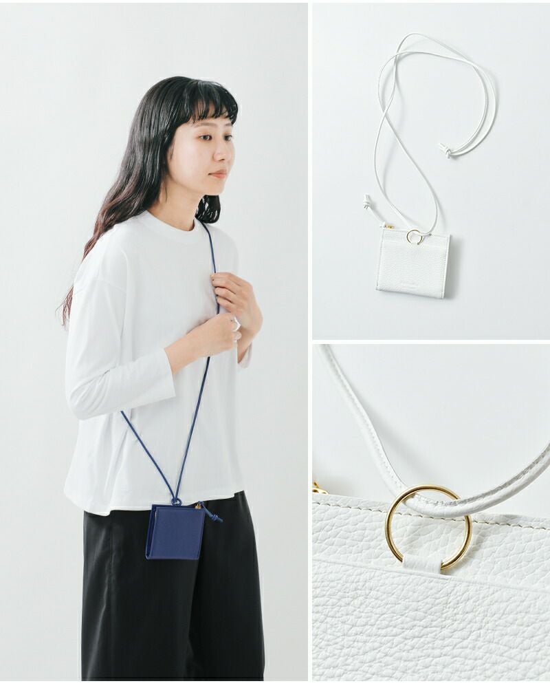 付属の革ひもを取り付ければ首掛けスタイルとしても使用可能。使い方の幅が広がる、機能的で洗練されたアイテムです。