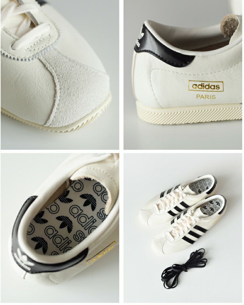 シンプルミニマル薄底スリムフラット底本革レザーギザギザスリーストライプススニーカーパリス adidas Originals アディダス オリジナルス スムースレザー ローテク クラシック スニーカー PARIS W paris-w レディース 2026ss新作 春夏【サイズ交換初回無料】