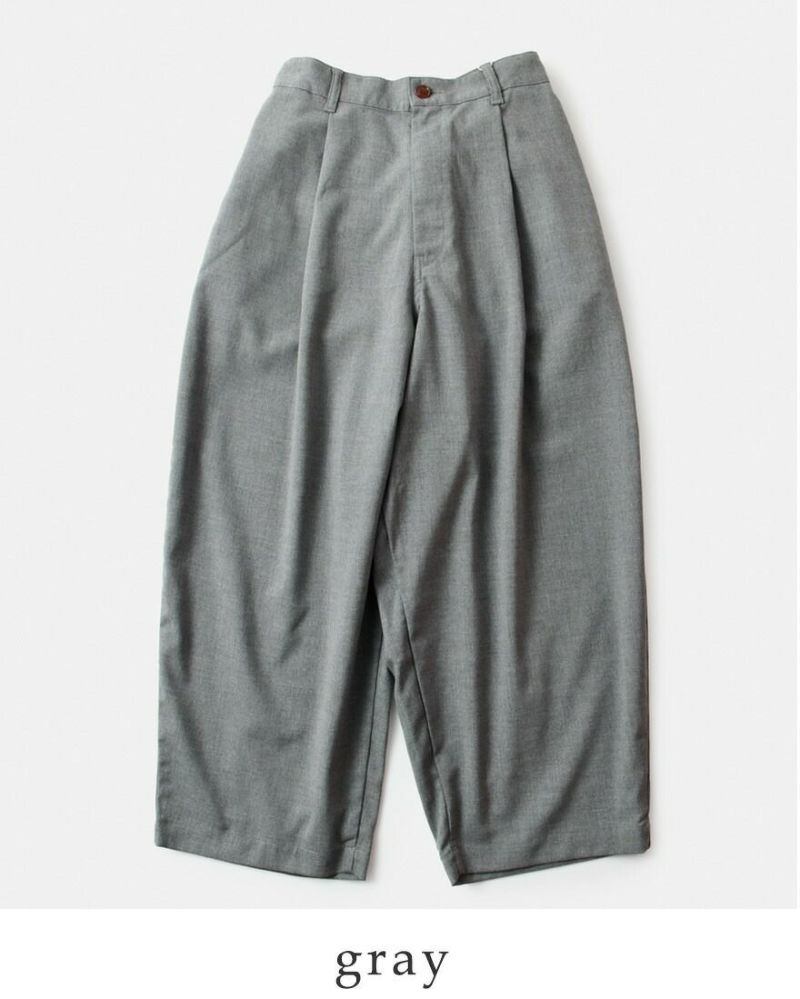 HARVESTY(ハーベスティ)の定番、ワイドエッグロングパンツのご紹介です。 ころんとした、たまごシルエットが人気のワイドパンツです。レーヨン混のさらりと軽くてドレープ感のある素材が、独特の丸みのあるきれいなラインのシルエットを出しています。きれいめにも合わせられるスラックスで、普段使いからおでかけまで、幅広いスタイリングを楽しめます。