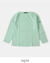 詰まったコンパクトなネックラインですが、ボートネックなので窮屈な感じがしません。首もとをスッキリと女性らしい印象でまとめてくれます。