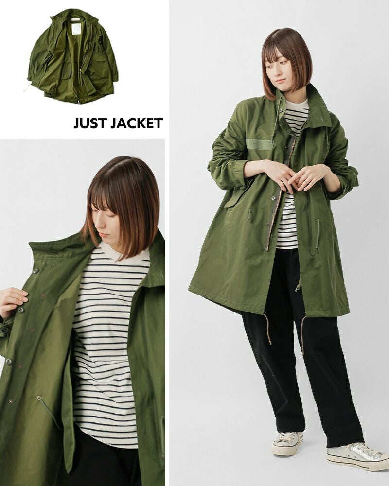 ライナーを取り外してジャケットだけで着こなせば春や秋にも大活躍。ウエストを絞ったAラインシルエットと袖まくりで季節感あふれる爽快な印象に。