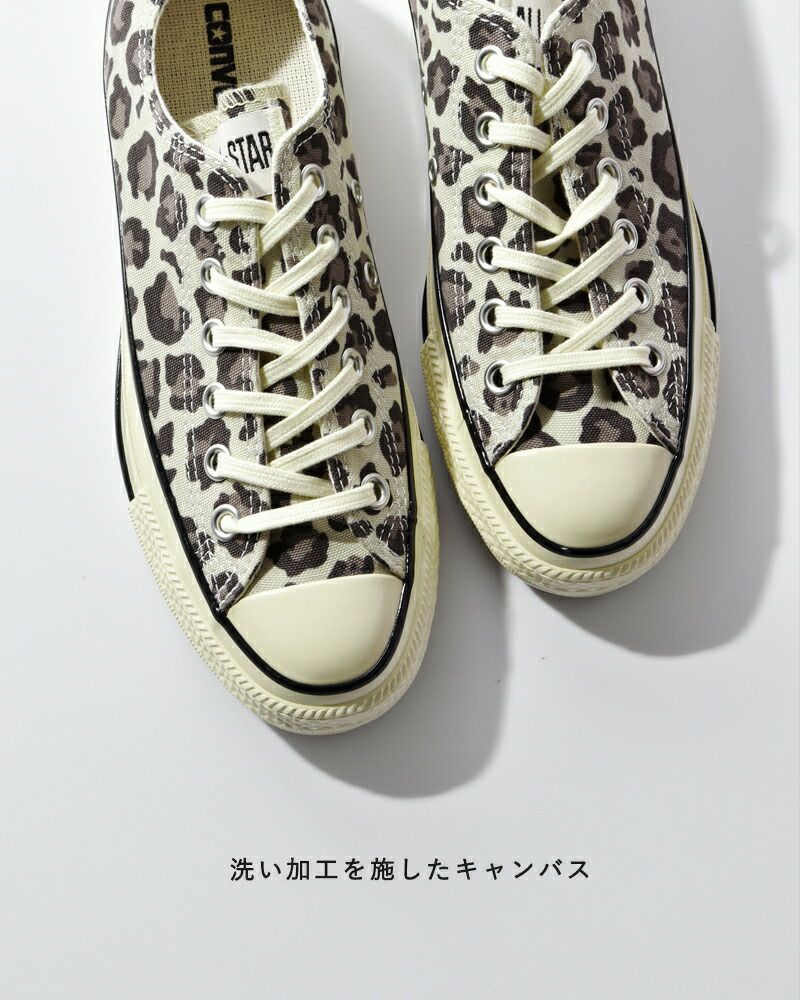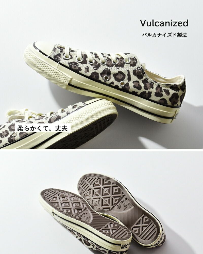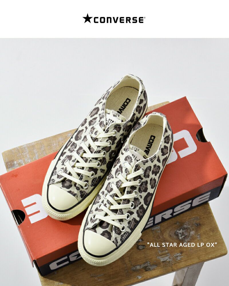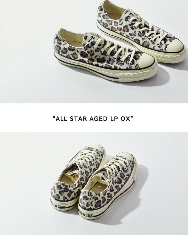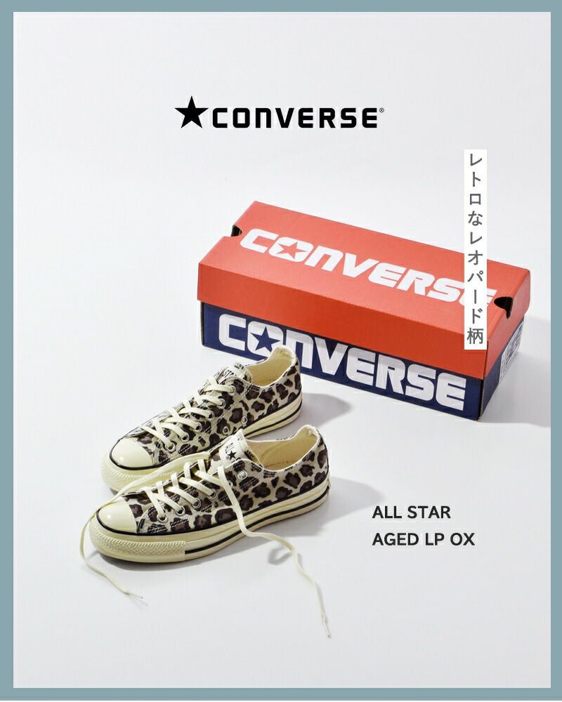 CONVERSE(コンバース)より、オールスター エイジド LP OX キャンバス スニーカー をご紹介します。オールスター エイジドのプリントアレンジモデル。ややフェイドしたような色味のレパード柄を採用し、濃い生成りのテープとシューレースを採用することで自然に経年したかのような雰囲気に仕上げたデザイン。